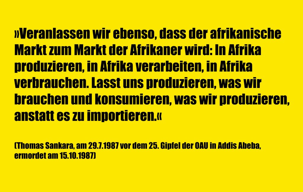 Dieser Kontinent muss wieder selbst seine natürlichen Ressourcen verarbeiten, lokal konsumieren und kann erst dann seine Überschüsse selbstbewusst in die Welt exportieren.